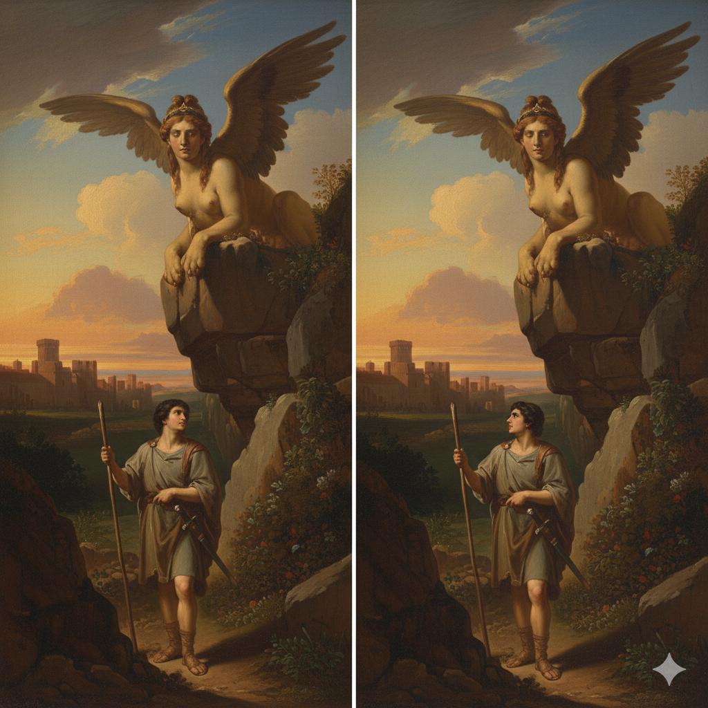 Et curieusement on retrouve aussi bien dans la Thèbes grecques qu’en Egypte ancienne (Gizeh) une référence à la Sphinge comme gardienne du seuil, gardienne des portes, interrogeant le passant, soit directement soit pas son silence, sur l’« homme » ou plus exactement « qu’est-ce que l’homme ? » ou encore « quel est le mode d’emploi ? » ou « comment ça marche ? » ou « comment ça suit ? ».