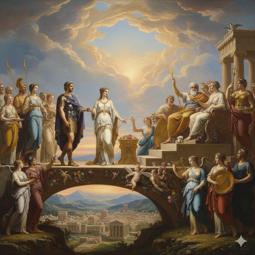 Le nom d’Harmonie est pour le moins singulier quand on se penche un tant soit peu sur l’histoire terrible de la ville de Thèbes et, deuxième singularité, tous les dieux assistèrent au mariage de Cadmos et d’Harmonie ce qui en fait un événement de portée cosmique.